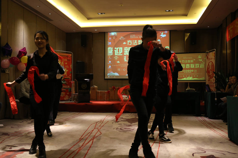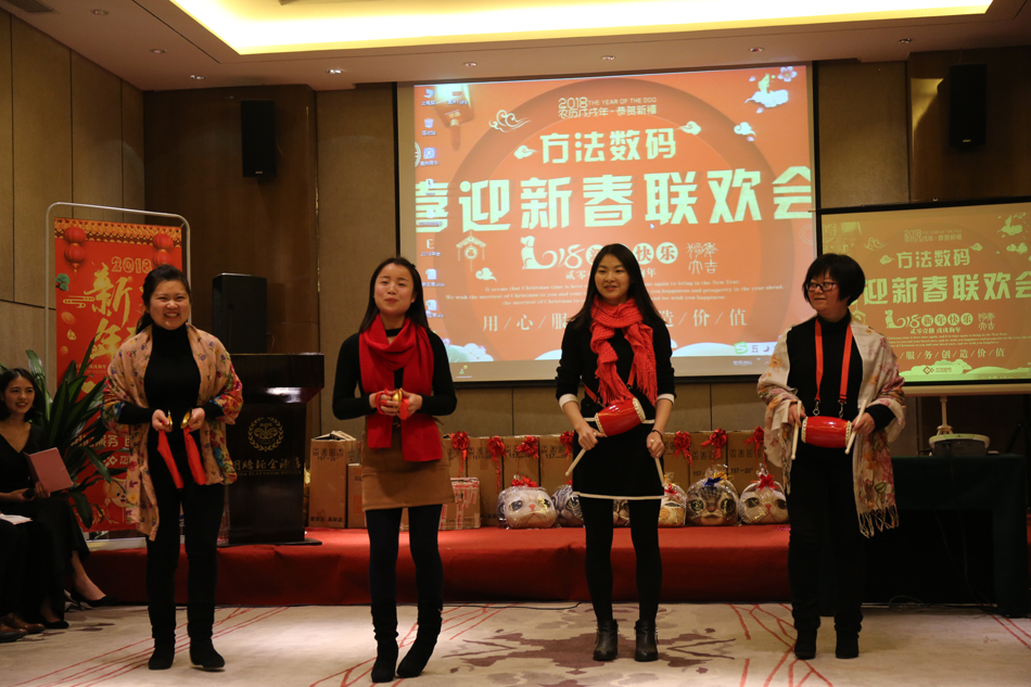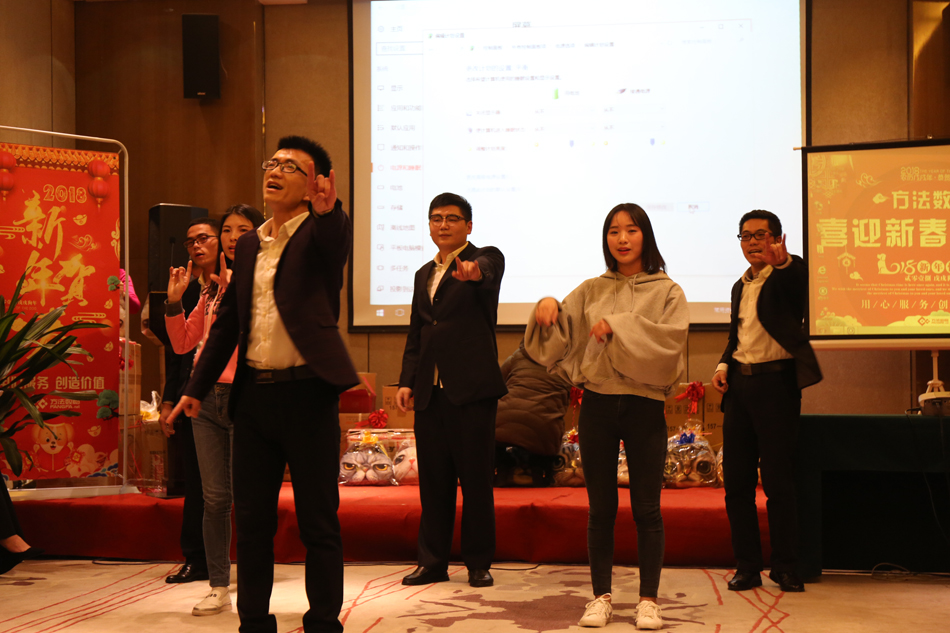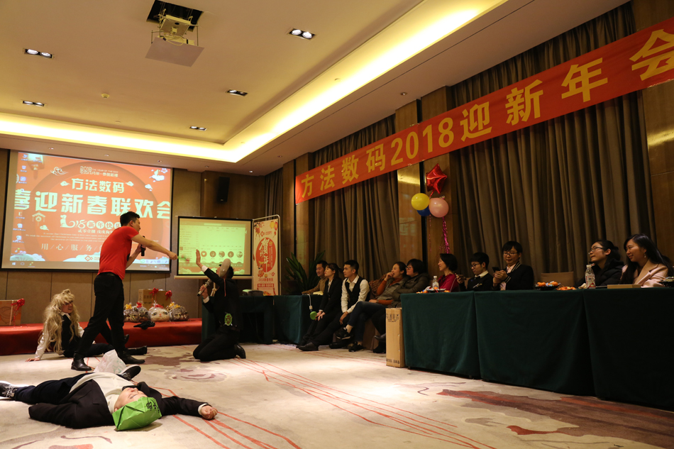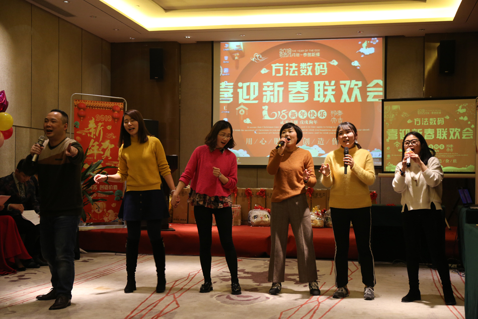 中午的午餐,大家推杯換盞,開懷暢飲,共話新年。伴隨著歡快的歌舞,2018年方法數(shù)碼迎新聯(lián)歡會(huì)也正式拉開了序幕。多才多藝的方法人,給我們展現(xiàn)了一場(chǎng)場(chǎng)別開生面的表演,歌曲、舞蹈、小品等形式多樣的文藝節(jié)目,場(chǎng)場(chǎng)都獲得滿堂喝彩,掌聲不斷。